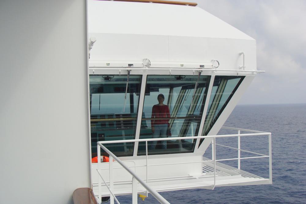 Seetag 2 So. 19.09.2010 - Reisetag 8 Wir machen eine Schiffsführung mit. 25 Personen Maximum. Wir sehen (fast) alles vom Maschinenkontrollraum bis zur Brücke. Der Kapitän persönlich begrüßte uns. Fotografieren war nicht erlaubt. |