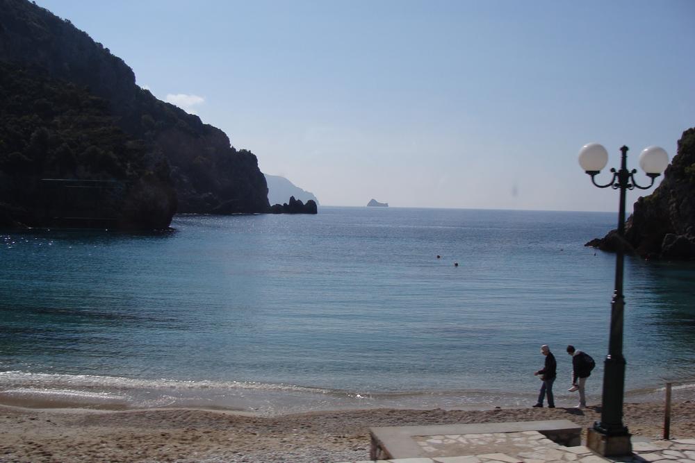 Wir fahren nach Paleokastritsa - in der Mitte des Fotos liegt das "versteinerte Schiff des Odysseus".