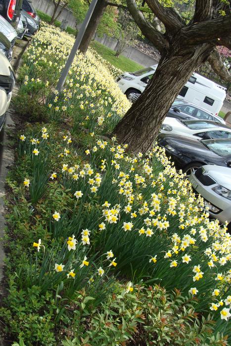Schon der Parkplatz und der Eingang sind voll mit Blumen.