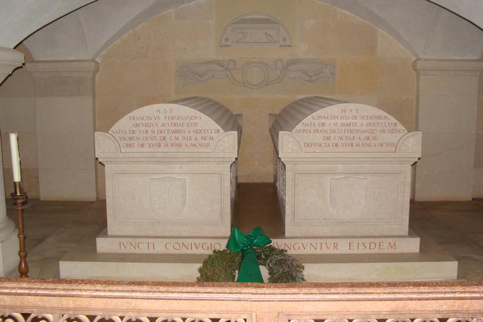 Familiengruft von Thronfolger Erzherzog Franz Ferdinand von Österreich (1863 - 1914) und seiner Ehefrau Gräfin Sophie Chotek, Herzogin von Hohenberg (1868 - 1914).